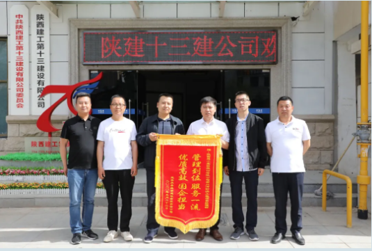 5月26日, 延安水務(wù)投資建設(shè)有限責任公司工程部部長侯海濤一行,為陜建十三建公司送來一面寫著“管理到位 服務(wù)一流 優(yōu)質(zhì)高效 國企擔當 ”的錦旗,并對十三建公司優(yōu)質(zhì)高效服務(wù)給予了高度評價。