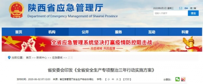 日前,省安委會印發(fā)《全省安全生產(chǎn)專項(xiàng)整治三年行動實(shí)施方案》(陜安委〔2020〕8號),在全省部署開展全省安全生產(chǎn)專項(xiàng)整治三年行動。專項(xiàng)整治三年行動,從2020年5月啟動,2022年12月結(jié)束,分為動員部署、排查整治、集中攻堅(jiān)和鞏固提升4個(gè)階段。