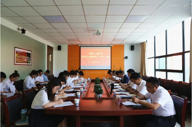 6月20日,陜建十三建公司召開黨委中心組理論學習(擴大)會議。公司領導班子、各基層單位負責人、各部室負責人以及機關全體黨員參加會議。