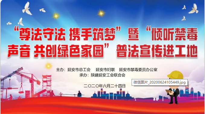 在第33個(gè)國(guó)際禁毒日來(lái)臨之際,為全面貫徹落實(shí)習(xí)近平新時(shí)代中國(guó)特色社會(huì)主義思想和習(xí)近平總書記關(guān)于禁毒工作重要指示精神,切實(shí)提高農(nóng)民工法律意識(shí)和禁毒意識(shí),6月24日,由延安市總工會(huì)、市婦聯(lián)、市禁毒委員辦公室主辦,陜建延安工會(huì)聯(lián)合會(huì)承辦的“尊法守法 攜手筑夢(mèng)”暨“傾聽禁毒聲音 共創(chuàng)綠色家園”普法宣傳教育活動(dòng)在陜建十三建公司延安市新區(qū)信天游文創(chuàng)餐飲街項(xiàng)目舉行。