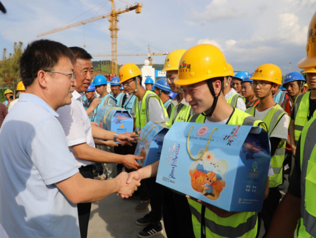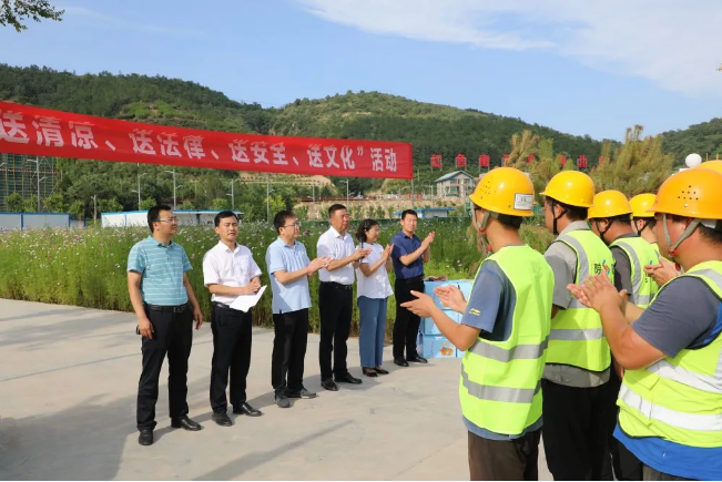 8月10日,延安市政協(xié)副主席、市總工會黨組書記、主席黑樹林一行來到陜建十三建公司南泥灣紅色文化小鎮(zhèn)項目慰問項目一線建設(shè)者,為他們送去茶葉、蜂蜜、綠豆、小米等防暑降溫物品。市總工會副主席、女職委主任鄭艷霞,南泥灣開發(fā)區(qū)黨工委副書記折克銀,市總工會辦公室副主任、困難職工幫扶中心主任惠瑞國,市總工會辦公室副主任、宣教部負責人康靖華,陜建十三建公司紀委書記、工會主席張軍祥出席活動。