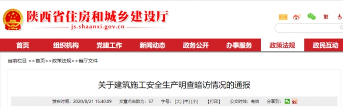 陜西省住建廳關(guān)于建筑施工安全生產(chǎn)明查暗訪情況的通報