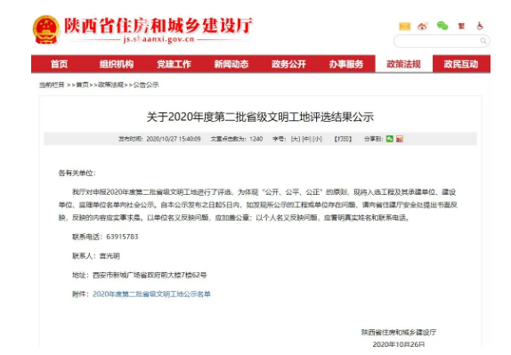 圖為陜西省住房和城鄉(xiāng)建設廳官網(wǎng)