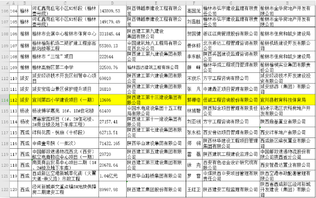 文明工地評選名單(黃色標記為我司獲獎項目)