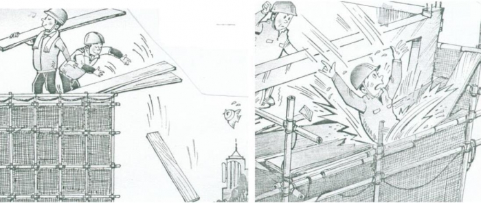 (二)交叉作業(yè):是指在施工現(xiàn)場空間上下不同層次(高度)同時進(jìn)行的高處作業(yè)。