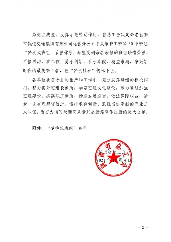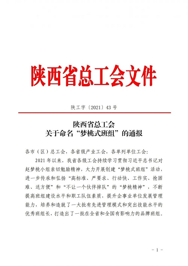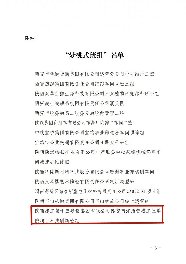 為進(jìn)一步傳承和弘揚“高標(biāo)準(zhǔn)、嚴(yán)要求、行動快、工作實、搶困難、送方便”和“不讓一個伙伴掉隊”的“夢桃精神”,近日,陜西省總工會對全省50個優(yōu)秀班組進(jìn)行了榮譽表彰,授予他們“夢桃式班組”榮譽稱號,集團(tuán)延安南泥灣勞模工匠學(xué)院項目科技創(chuàng)新班組獲此殊榮。