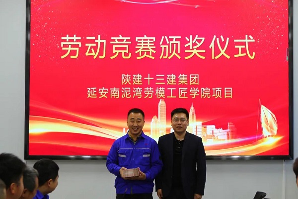 12月15日,陜建十三建集團延安南泥灣勞模工匠學院項目召開勞動競賽總結表彰大會。集團副總經(jīng)理楊永宏,紀委書記、工會主席李靜,項目部全體管理人員及勞務工人代表參加。