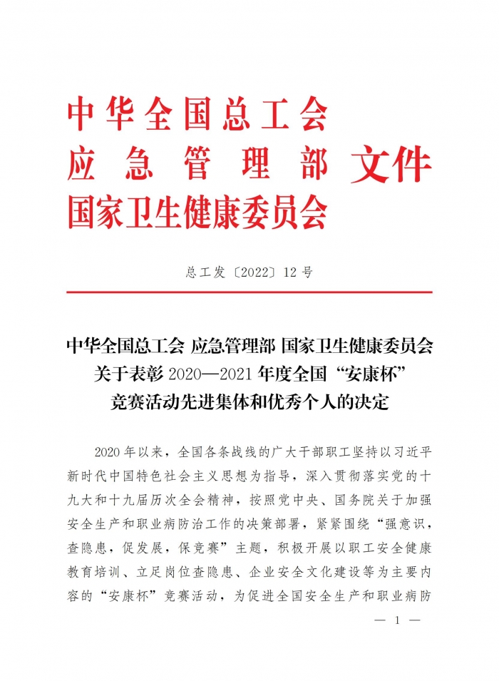 11月2日,全國“安康杯”競賽組委會在北京召開2020-2021年度全國“安康杯”競賽活動表彰暨經(jīng)驗交流會。表彰2020—2021年度全國“安康杯”競賽先進集體和優(yōu)秀個人,集團延安南泥灣勞模工匠學(xué)院項目榮獲“優(yōu)勝班組”榮譽稱號。