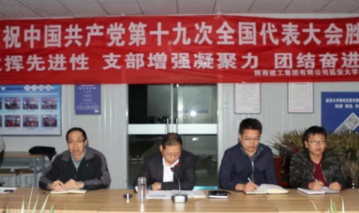 為深入貫徹落實(shí)中央、省市委和集團(tuán)公司關(guān)于學(xué)習(xí)宣傳貫徹黨的十九大精神的有關(guān)要求,切實(shí)學(xué)習(xí)好、宣傳好、貫徹好黨的十九大精神,用十九大精神武裝頭腦、指導(dǎo)實(shí)踐、推動(dòng)工作。11月14日晚七點(diǎn),黨的十九大精神專題宣貫會(huì)在延安大學(xué)新校區(qū)圖書館會(huì)議室隆重舉行。陜建集團(tuán)工程八部、陜建十三公司全體職工和延安大學(xué)新校區(qū)項(xiàng)目部全體黨員同志近70人參加會(huì)議。由卜國平同志對(duì)黨的十九大精神和習(xí)近平總書記在十九大上的重要講話進(jìn)行宣貫。